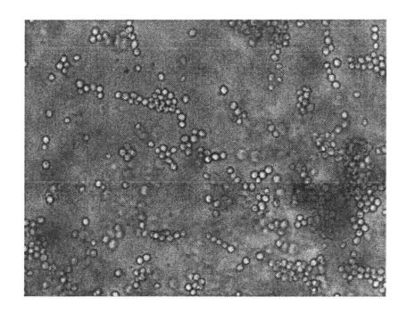 It can be seen from Figure 5.2 that there is no significant difference in the number of yeast colonies in samples with different contents of HPMC added without freezing treatment. This is similar to the result determined by Heitmann, Zannini, & Arendt (2015) [180]. However, after 60 days of freezing, the number of yeast colonies decreased significantly, from 3.08x106 CFU to 1.76x106 CFU (without adding HPMC); from 3.04x106 CFU to 193x106 CFU (adding 0.5% HPMC); reduced from 3.12x106 CFU to 2.14x106 CFU (added 1% HPMC); reduced from 3.02x106 CFU to 2.55x106 CFU (added 2% HPMC). By comparison, it can be found that the freezing storage environment stress led to the decrease of the yeast colony number, but with the increase of HPMC addition, the degree of the decrease of the colony number decreased in turn. This indicates that HPMC can better protect yeast under freezing conditions. The mechanism of protection may be the same as that of glycerol, a commonly used strain antifreeze, mainly by inhibiting the formation and growth of ice crystals and reducing the stress of low temperature environment to yeast. Figure 5.3 is the photomicrograph taken from the 3M yeast rapid counting test piece after preparation and microscopic examination, which is in line with the external morphology of yeast.